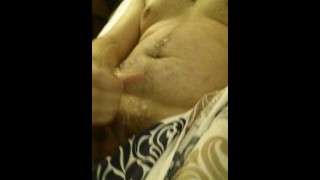 Jerk off in bed, big uncut cumshot