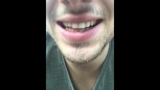 Handsome Guy Jerking Off his Cock at Home, Tongue Out and Cum into Shirt