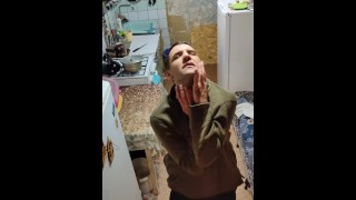 Trad wife wakes her husband up new years morning with a sloppy deep throat blowjob and Cowgirl cream