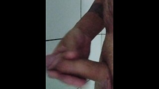 Very horny, I take off my underwear, jerk off and get the milk out of my huge cock.
