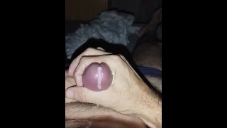 After long desperation, handjob while peeing. Loud horny moaning cumshot, skinny sweating wet body.