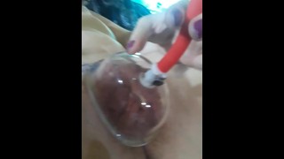 Pumped teen pussy stretched and gaped by big toys and punch fisted hard